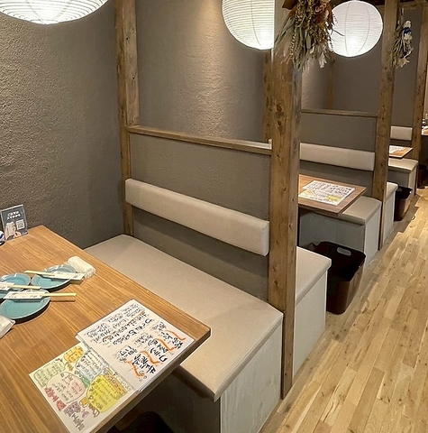 【個室9室】ご家族やご友人と過ごしやすい5名様までご利用いただける個室が7つ、デートにぴったりな2名様個室1つ、ちょっとしたお集まりに使いやすい7名様個室1つをご用意!周りを気にせずゆったりと過ごせておすすめです◎
