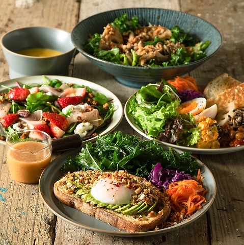 外はカリッとした食感、内はフレッシュな具材がたっぷり詰まったサンドイッチは、見た目も美しく、思わず笑顔がこぼれます。栄養満点のプレートや、爽やかなデザートは、どれも心を満たす美味しさ。気軽に立ち寄れる居心地の良い空間で、友達との会話が弾む素敵なひとときをお楽しみください☆