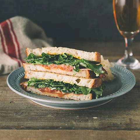 サンドイッチの定番BLT、当店ではカリッと焼きあげたベーコン、焼きトマト、シーザードレッシングで和えたレタスを石窯焼きのカンパーニュにサンドしました。ジューシーなサラダ感覚でどうぞ。