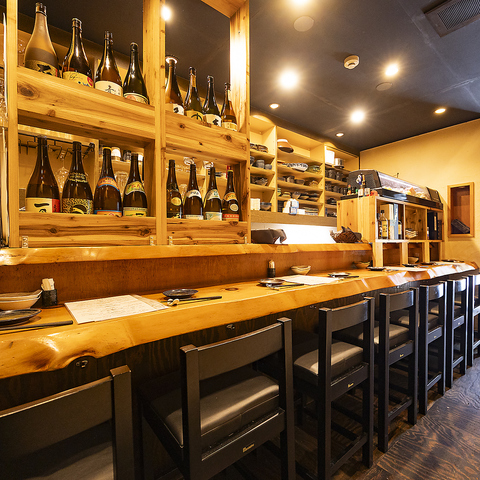 臨場感あるカウンター席!! 一枚板の自慢のカウンター!
