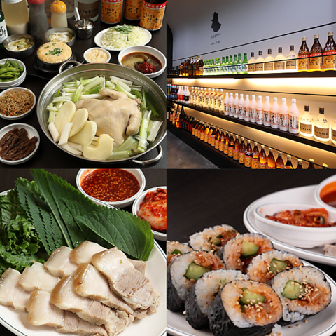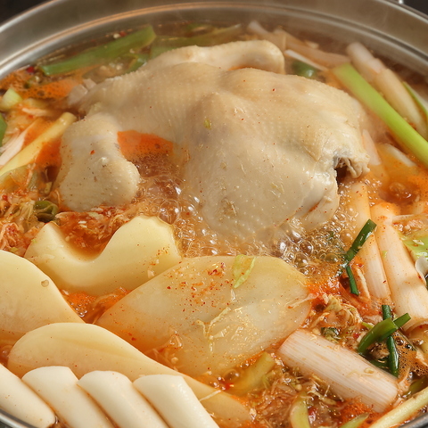新鮮な国産鶏を一羽丸ごと使用した、2~3名様向けの贅沢コース!鶏肉は冷凍せず、2日以内に仕入れた新鮮なものだけを使用。あっさりとしたスープは、煮込めば煮込むほど鶏の旨味が溶け出し奥深い味わいに。特製の唐辛子辛みそダレで、味の変化も楽しめます。〆はカルグクス、リゾット、乾麺からお選びいただけます。