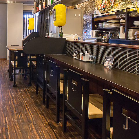 【お一人様歓迎◎】お仕事帰りや自分へのご褒美に、気兼ねなく過ごせるカウンター席はいかがでしょうか♪スタッフとの会話を楽しみながら、目の前で仕上がる料理を堪能できるのは特等席ならではの魅力。落ち着いた雰囲気の店内は、デートでのご利用にも最適です。ゆったりとした時間をお過ごしください。