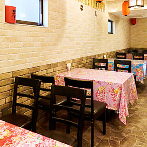 | テーブル | 4名様×4 | 3階席には4名様用のテーブルが並び、明るい花柄のテーブルクロスが特徴です。友人や家族との楽しいひと時を、明るい雰囲気の中でお過ごしいただけます。ぜひお越しください。 |