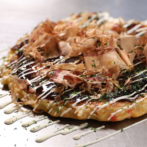 仲間と囲む鉄板の上は、いつも賑やか。広々としたテーブル席で、お好み焼き・鉄板焼き・お酒までしっかり楽しめます!仕事帰りの一杯に、ぜひお立ち寄りください。アツアツの出来立てを仲間内で囲いながらご体験ください。