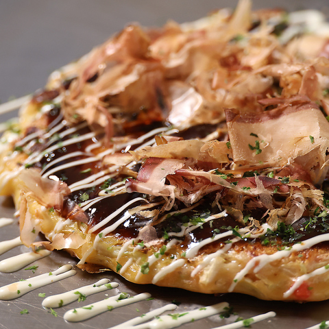外はカリッと、中はふんわり。やいてん家のこだわりお好み焼きは、毎日丁寧に仕込んだ特製生地とたっぷりの具材で仕上げる、どこか懐かしくて、ほっとする味。鉄板の香ばしい香りと、秘伝のソースの旨みが食欲をそそります。熱々をテーブルでシェアして、楽しい時間をお過ごしください!