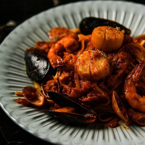 大粒ホタテと魚介をふんだんに使用した贅沢パスタ。来店した際にはぜひご賞味ください。コースでの受付も承っております。