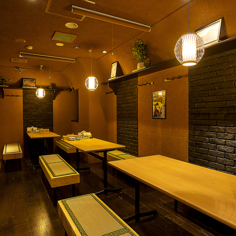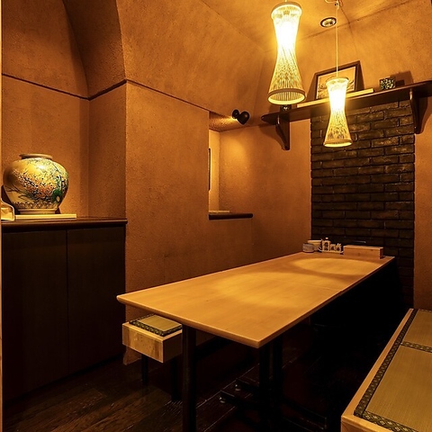大正ロマンを感じさせる、どこか懐かしく温もりのある落ち着いた店内。レンガ調のアーチをくぐると、柔らかな灯りに包まれた空間が広がり、時間の流れが緩やかにほどけていくような心地良さが漂います。お一人様での軽い一杯から、大切な方との接待、賑やかなご宴会まで。シーンに合わせて自然と寄り添ってくれる居心地の良さが魅力の一軒です。