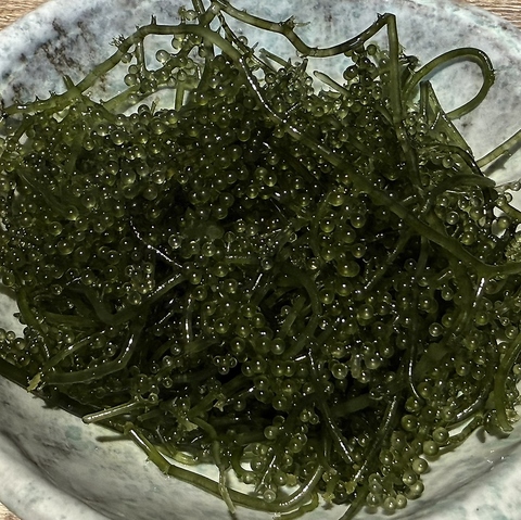 海ぶどうをはじめ、島らっきょうやスヌイ(もずく)など、沖縄が誇る食材が大集合!