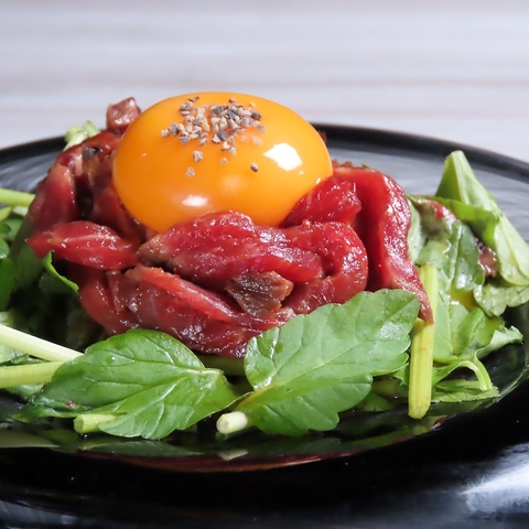 ツバメファーム アスタ卵使用/A5和牛をローストしたユッケをセリとご一緒に