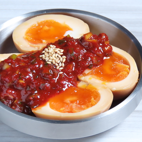 半熟煮卵を甘辛酢に漬け込んだ料理