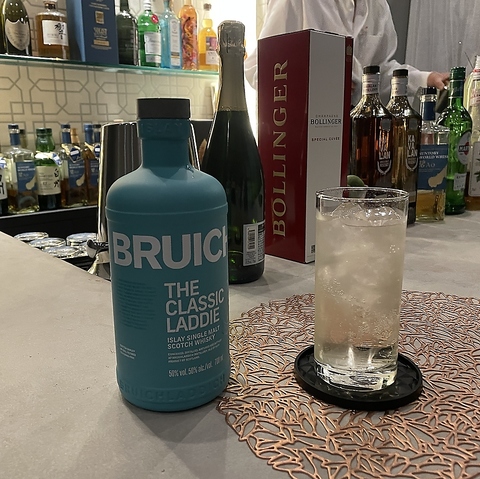 壁紙の模様や照明にもこだわりが感じられ、洗練された雰囲気が漂います。カウンターには、種類豊富なお酒がずらりと並び、まるで宝石のよう。ゆったりとくつろげる空間で、特別な時間を過ごすのにぴったりのお店です。お酒好きな方はもちろん、落ち着いた空間で語り合いたい方にもおすすめです。