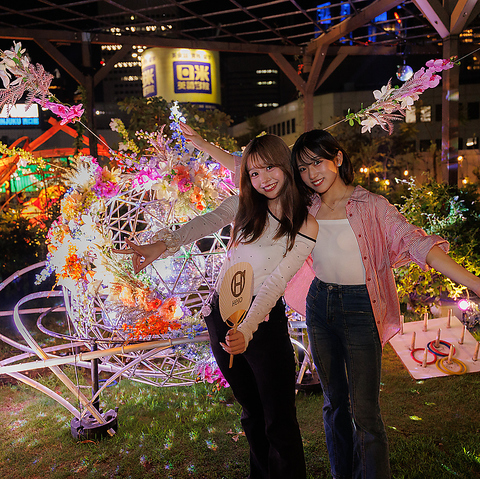 巨大な光のオブジェやフォトブースが夏祭り気分を華やかに演出します。浴衣や着物での来場も大歓迎。日本の良き文化を身にまとい、雰囲気たっぷりの空間で特別な時間をお楽しみください。友人同士やご家族、会社の集まりなど、さまざまなシーンでご利用いただけます。最大300名様まで収容可能です。