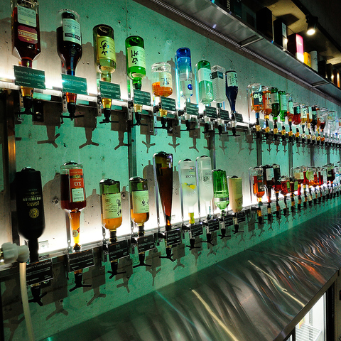 当店の飲み放題は壁一面に並ぶお酒から、あなた好みのカクテルをセルフで作れる新感覚の飲み放題☆自分のスタイルで選んだお酒を使って、オリジナルの一杯を楽しむことができます!もちろん、バーテンダーがお手伝いもします◎焼酎や日本酒、ウイスキーなど、幅広いジャンルのお酒が揃っているから、どんな味も楽しめる♪