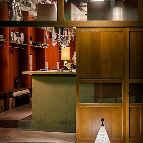 ≪西大橋駅から徒歩5分≫伝統的な木の引き戸を開けると広がるのは、朱色の壁と無骨な天井が織りなす「ちょっといい、なんかいい」立ち飲み空間。心地よい統一感の中で、大人の粋な時間をお楽しみください。お仕事帰りのちょい飲みに◎