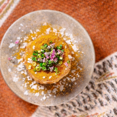 料理人の熟練の技が凝縮された、こだわりの大根の唐揚げ。出汁の旨味を最大限に閉じ込めたホクホクの大根に、からすみの芳醇な香りと塩味が加わり、立ち飲みながらも上質なひとときを演出いたします。ぜひ、ご賞味あれ!