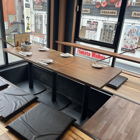 博多駅筑紫口から徒歩5分の好立地に他では食べられないこだわりの料理が登場。席の目の前で仕上げる料理やあっと驚く絶品料理が目を引きます♪団体様宴会向けの掘り炬燵席もご用意しております。