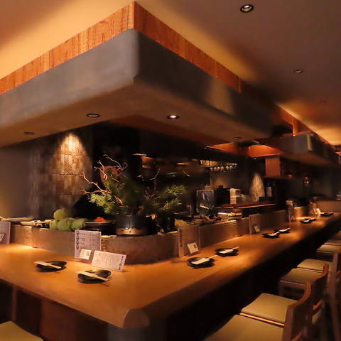 目の前で作り上げるお料理を見ながらお楽しみいただけるカウンター席。仕事終わり、デート利用など落ち着いたシーンにおすすめ【金山/金山駅/おばんざい/おでん/鍋/海鮮/食べ放題/飲み放題/食べ飲み放題/個室/忘年会/新年会/歓迎会/送別会/女子会】