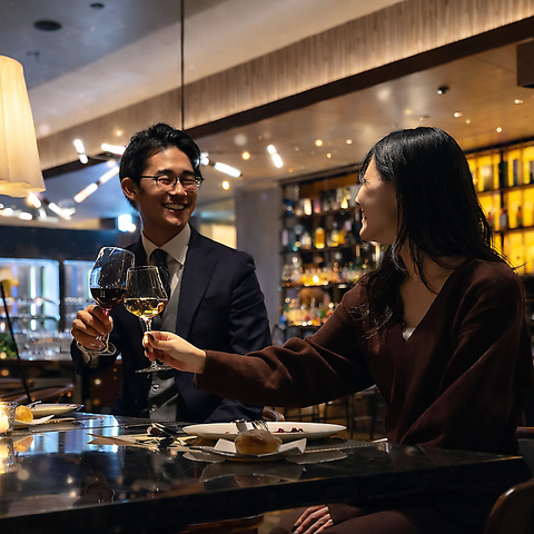 記念日やデート、ちょっとしたお祝い事のシーンでもご利用いただけます。こだわりの照明が紡ぐ落ち着いた空間は、ディナーにも、深夜のバータイムにもふさわしい洗練された雰囲気です。コースの最後にバーカウンターで一息つくのもおすすめです。