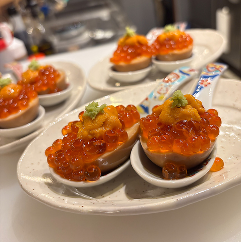 「カニクリームコロッケ」や「とりの塩唐揚げ」などみんな大好き居酒屋定番メニューから、「まてつ式!シン・レバニラ」や「雲丹とイクラと煮玉子」など当店限定のメニューまでバラエティ豊かに取り揃えています。