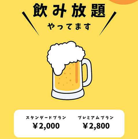 | 飲み放題 | あり :※飲み放題2,000円(税込)~ |