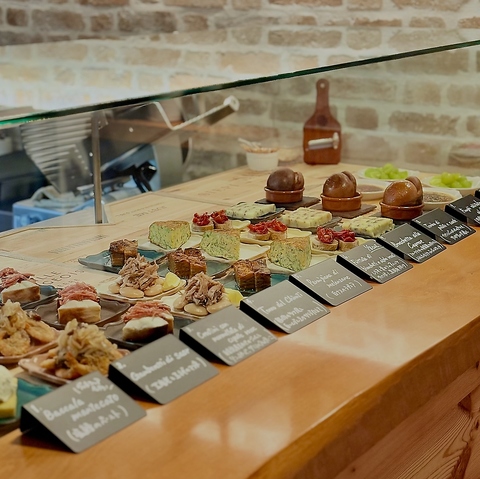 店頭のショーケースの中から小皿料理(チケッティ)をお選び頂けます。番号で店員にお伝えください。