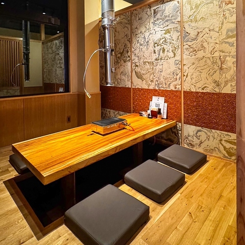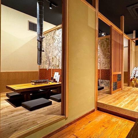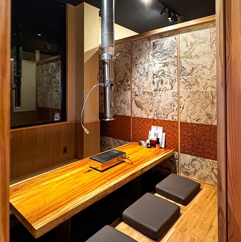 無垢材や和紙を基調とした店内は落ち着いた雰囲気で統一されております。プライベートな個室の空間で誰にも邪魔されることなく、上質で厳選された焼肉体験をお楽しみください。