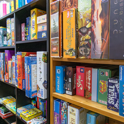 当店では定番のものから見たことのないものまで、さまざまなジャンルのボードゲームを棚いっぱいに取り揃えております。ぜひこの機会に普段とは違ったボードゲームの世界に足を踏み入れ、お気に入りの一品を見つけてみてください♪