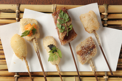日本全国の旬の食材の串揚げを中心に、熊本産「馬刺し」も盛り込んだ、お勧めコース。※+2,750円(税込)/お一人様で飲み放題をお付けいたします。気軽にお申しつけください。