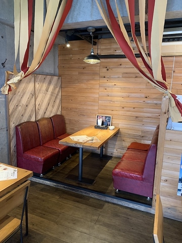 アンティーク調の落ち着いた雰囲気で、おしゃべりやお酒を楽しめる居心地の良い空間です。座面はふかふかで、しっかりとした背もたれもあるため、ゆったりとしたくつろぎ時間をお過ごしいただけます。デートや女子会にも◎