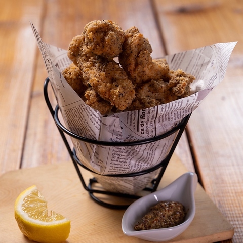 一口サイズカットしたチキンをカラッとクリスピーに揚げた一品。おつまみに最適なので、迷ったらまずは一杯目とともに注文してみてはいかがでしょうか。お好みでレモンを絞って召し上がれ♪