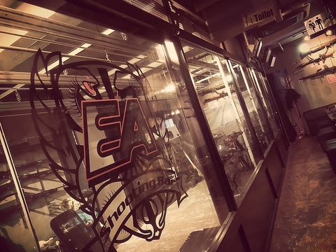 【Shooting Bar EA】では、300種類以上の銃に囲まれた贅沢な空間が広がります。店内に足を踏み入れると、壁一面に銃が展示され、まるで武器庫にいるかのような雰囲気が楽しめます。銃に囲まれた空間で、お酒や射撃を楽しめる、ガンマニアやサバげー好きにはたまらない空間です♪300種類以上の銃に囲まれて。贅沢な時間を武装しましょう。
