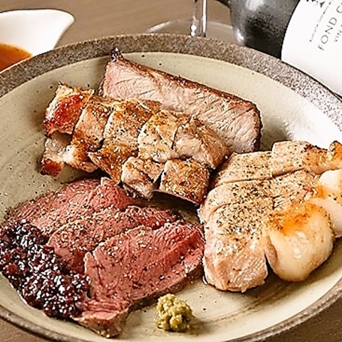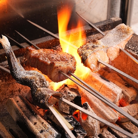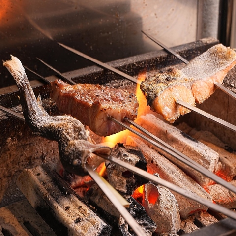 店主目利きのお肉や旬の魚や野菜を備長炭でじっくり焼き上げてご提供いたします。
