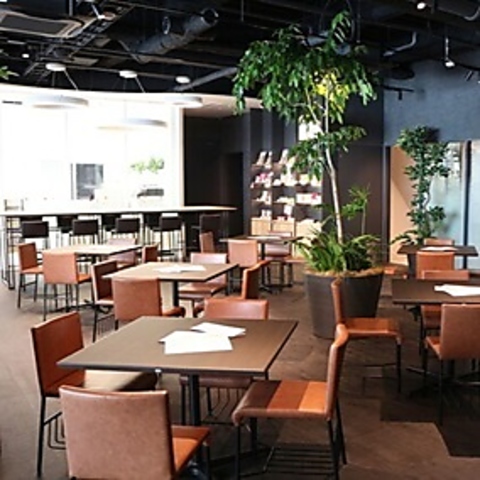アイアン&レザーが基調のインダストリアルな空間に、癒しのグリーンを配置。昼は明るく爽やかなテラス席で、優雅なランチやティータイムを楽しむこともできます。夜は控えめのライトアップで落ち着いた雰囲気になり、特別な日のディナーやデートにぴったりです♪