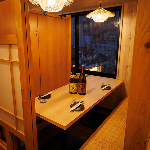 温かみのある木目調の個室!周りを気にせず楽しめる空間です!窓から外を眺めながら、厳選地酒と自慢の料理を味お楽しみください!落ち着いた雰囲気なので、友人との飲み会はもちろん、デートや接待にもピッタリ◎♪リラックスしながら楽しい時間を過ごせます!お席のみのご予約も大歓迎なので、お気軽にご来店ください!