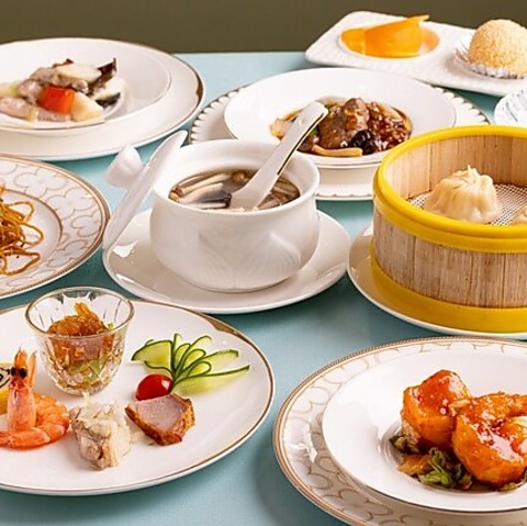 前菜の盛り合わせから始まり、母鶏と山芋の滋養スープ、店内仕込みの小籠包、大海老のチリソース、牛肉のオイスター炒め、鶏せせり肉の香味揚げ、そして冬筍とキクラゲの豚肉炒めが楽しめます。最後は焼豚入り炒飯/上海焼きそば、デザートも充実。贅沢な味わいを堪能できます。税込6,600円~(※写真はイメージです)