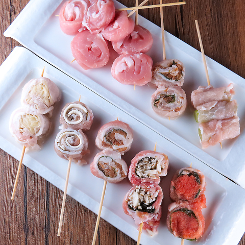 当店の魅力はひとつひとつ丁寧に串打ちをした豚巻串!ジューシーな豚肉で新鮮な具材を包み、絶妙な焼き加減で仕上げた絶品串焼きです。名物くる梨串をはじめ、チーズ、パクチー、キムチ、ネギ塩れもんなどバリエーションも豊富です◎