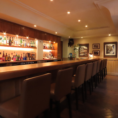 長居したくなるような心地の良い重厚なカウンター席です。お一人でのご利用はもちろん、デートでのご利用もおすすめです!大人の雰囲気の中、お食事と会話をお楽しみください♪