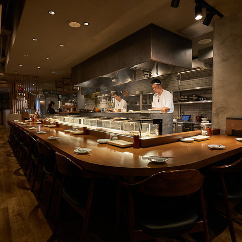 人気のカウンター席からは、職人による華麗な手捌きを望むことができます。ほのかに漂う炭火焼きの香りに、目を離せなくなる焼き場のライブ感に食欲がそそります。おひとり様はもちろん、上司との食事、接待、女子会やデートなど様々なシーンで楽しめるお席です。