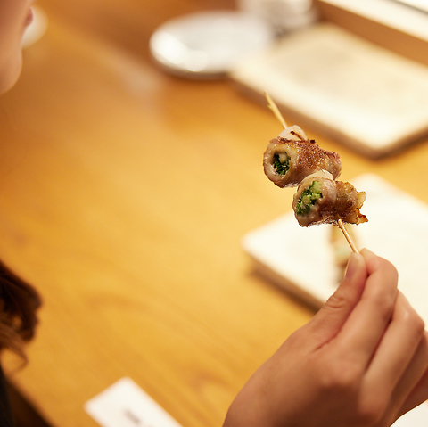 自慢の焼鳥はもちろんのこと、野菜巻き串や博多の郷土料理、お肉料理まで各種一品料理も種類豊富に取りそろえており、女性や健康志向の方にも喜んでいただけるメニューとなっています。当店にきたらまずは名物『野菜巻き串』をお召し上がりください。皆様のご来店心よりお待ちしております。
