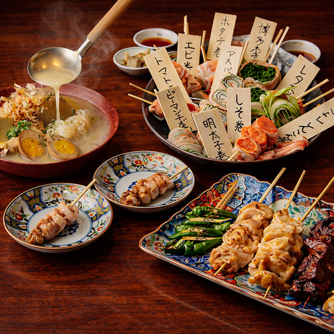 本場博多の味を堪能!厳選されたぷりぷりのもつと秘伝スープが絡み合う「上もつ鍋」をメインに据えた、全9品の豪華フルコースです。自家製タルタルたっぷりのチキン南蛮や、職人が炭火で焼き上げる本格串焼きなど、ボリューム満点の逸品が宴を彩ります。3時間のゆったり飲み放題付きなので、会社宴会や大切な集まりにも最適。〆のラーメンまで、心ゆくまで贅沢な時間をお過ごしください。