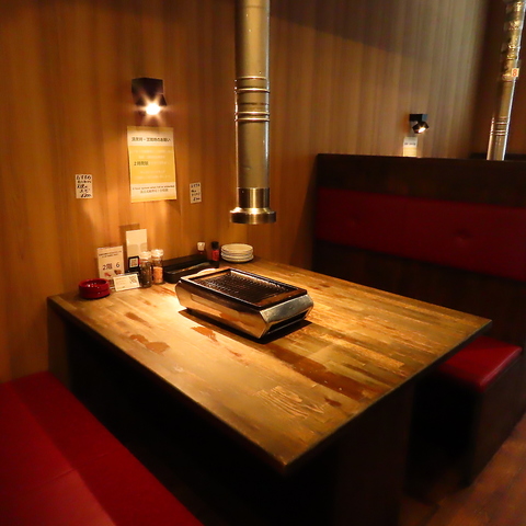 【大人な雰囲気でオシャレに楽しむ】木と赤を基調とした内装が特徴の当店は、オシャレで清潔感溢れる空間です。全テーブルには嬉しい排煙装置(ダクト)が完備されており、快適な食事が楽しめます◎少人数様からご利用もOK!大切な人との特別な時間を美味しい料理と共に、大人な雰囲気の中で楽しいひとときをお過ごし下さい