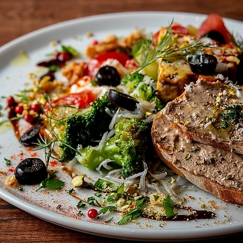 ランチは日替り5種の食べ放題、ディナーはお二人でも食べやすいサイズで20種ご用意。テイクアウトは常時10種以上を取り揃え、テラス席やグラングリーンパークでお楽しみいただけます。