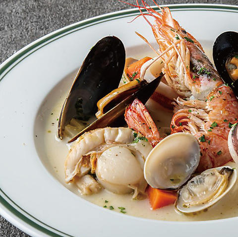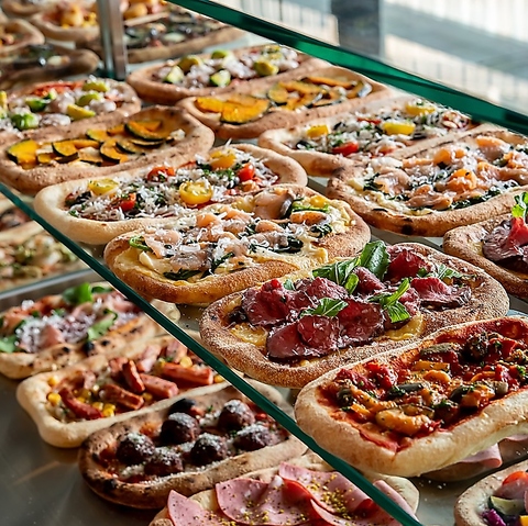 魚介たっぷりボリューム満点サラダや具だくさんクラムチャウダー、ガッツリポークグリルなどなど、バラエティに富んだラインナップです。25種の中からおひとつご注文いただくと日替わり5種のピッツァが食べ放題で付いてきます。