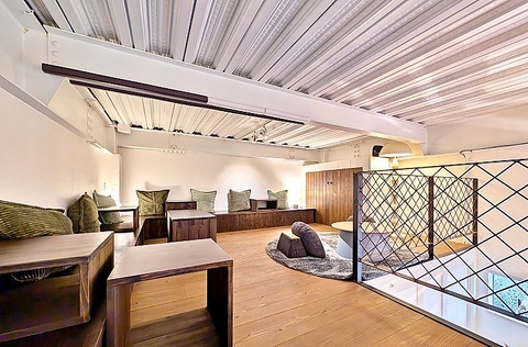 メゾネットタイプの2階は、心地よい空間が広がります。L字型のベンチシートは横並びに座ることができ、友人と楽しい時間を過ごすのに最適です。また、座敷席では、まるで友達の家に遊びに来たかのようにリラックスできます。その隠れ家のような雰囲気は、特別なひとときを演出してくれます。ワクワク感が満載の場所です!