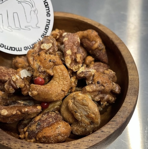 スイーツを食べた後に塩っけを欲する時がありませんか?生シフォンケーキお一つご注文につき、一種類お付けしております♪カレー、チーズ、アドボの3種類です♪もちろんスパイスはmameのオリジナルブレンドです!気に入っていただけたら、レジ横にて販売しております♪お酒のつまみにも人気です。