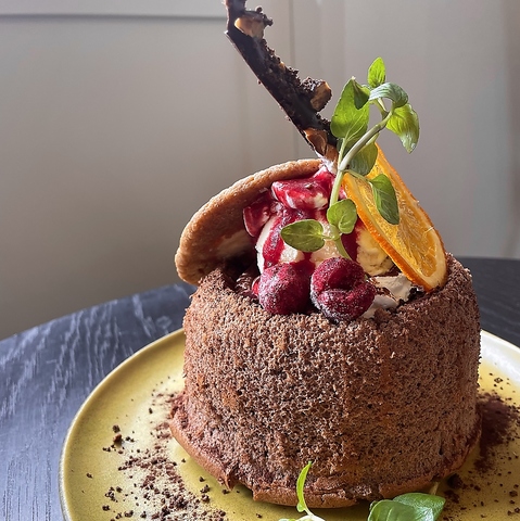 ショコラ生地は優しい甘さの中に感じるカカオのビターテイストが上品で、ベリー類の爽やかな酸味にマッチ