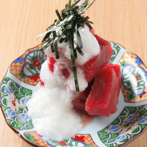 濃厚まぐろ×ふわとろ粘り。箸が止まらない定番の逸品! 当店の目利きが選んだ鮮度抜群の「まぐろ」に、丁寧にすりおろした「大和芋(山芋)」をたっぷりとかけました。赤身の濃厚な旨味と、とろろの優しい甘みが絶妙に絡み合い、わさび醤油をひと回しすれば最高のおつまみに。