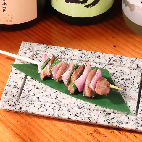 当店の焼き鳥は、すべて博多地鶏を使用しています。30年以上の歴史を持つ博多地鶏は、福岡県の郷土料理をさらに美味しくしようという発想から生まれた地鶏です。地鶏ならではの噛みごたえと、噛むほどに増す旨味、きめ細やかな肉質がサクッとした歯切れを生み出し、特別なひとときを演出します。