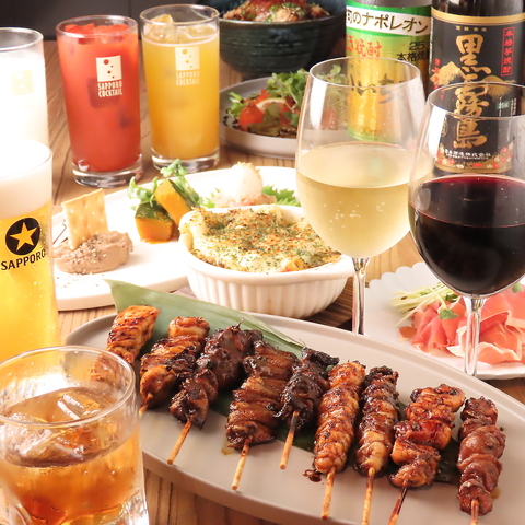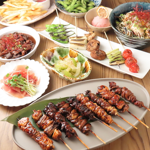 【当日OK!黄金鶏お任せ宴コース】岩手県地鶏『黄金鶏』の串焼き含む全16品 3850円