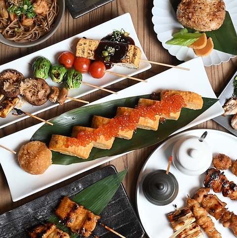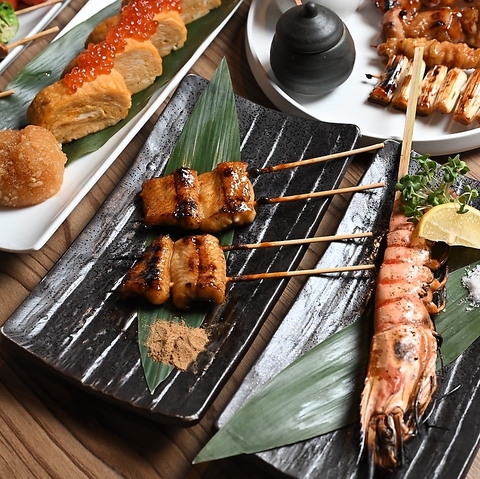 岩手県地鶏『黄金鶏』の串焼きを店主が厳選したお任せ串とカジュアルな一品と甘味を盛り込んだ定番コース。大切な方とのデートやご友人・接待・会食にも最適なプランです。洗練された店内で、皆さまの大切なお時間をお過ごしください。※お誕生日・記念日などプレートなどのご用意も承っております。